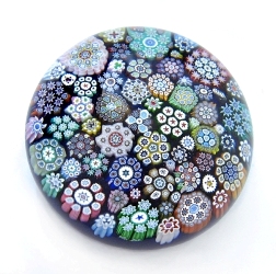 Close Millefiori gelegt aus unterschiedlichen, bunten komplexen Canes auf kobaltblauem Grund; ’PMcD’-Signatur-Cane, D: ca. 6,5 cm verkauft/soldPeter McDougall