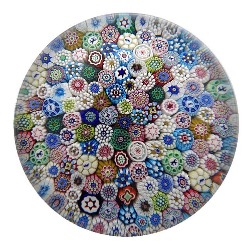 Dieser klassische Paperweight kann auch von Saint-Louis nicht mehr gefertigt werden, da diese vielfältigen und komplexen Millefiori-Canes - Bestände, die über Jahrzehnte immer wieder ergänzt wurden - heute nicht mehr vorhanden sind.