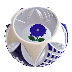Lavishly decorated, perfect cutted blue-white Double-Overlay Paperweight, with a cobalt blue dahlia in the centre.
