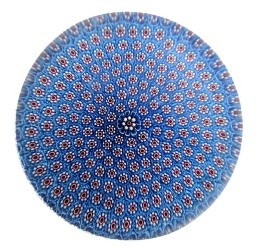 Feinstes Millefiori - wirkt wie eine hellblaue Wiese mit vielen, vielen kleinen Blümchen; exakt und einzigartig! lim. Edition - 1982, aus der klassischen Paperweight-Periode. Saint-Louis-Signatur-Cane SL 1982 D: ca. 7,5 cm