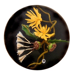 "Enchanted Yellow" Entwined dandelion flowers before loosing seeds into the wind. Unikat, 2013, Signatur-Cane ’SB’ und zusätzlich gravierte Signatur, D: ca. 7,5 cm