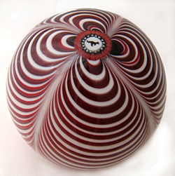 Marbrie, hergestellt in klassischer Kammzugtechnik, in den Farben Rot, Malve und Weiß, aufwendiges Cane mit einer Känguruh-Silhouette am Top; Überfangtechnik/encased, 1983, Bruce Sillars, am Boden signiert, D: ca. 7,5 cm