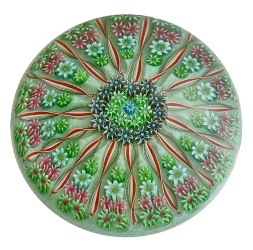 Klassisches buntes Millefiori-Cartwheel-Muster auf hellgrünem Grund; vor 1978* D: ca. 7,8 cm