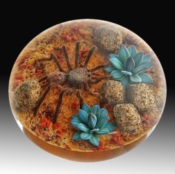 Tarantel zwischen Steinen und Sukkulenten im Wüstensand. 1997, Unikat, signiert und nummeriert, D: ca. 8,2 cm