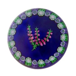 Heidekrautzweig auf transparentem, amethystblauem Grund, umrahmt von einer Millefiori-Girlande in Grün und Amethyst; Sonderausgabe, Signatur-Cane: ’P 1978’, lim. Edition 500/452 gefertigt, D: ca. 6,8 cm