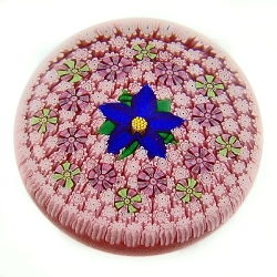 Altrosa Carpet Ground mit eingestreuten Millefioriblüten und einer kobaltblauen Blume im Zentrum; Sonderausgabe 1983, "P 1983"-Signatur-Cane, limited. Ed. 300 , D: ca. 8 cm