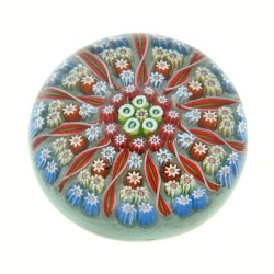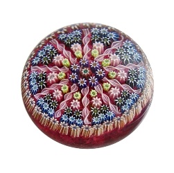 Klassisches buntes Millefiori-Cartwheel-Muster auf transparentrotem Grund; nach 1978, Signatur-Cane ’P’ in der äußeren Millefiori-Reihe, D: ca. 6,4 cm