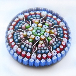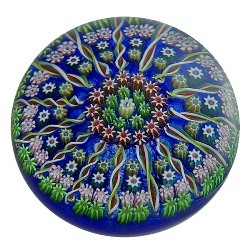 Klassisches buntes Millefiori-Cartwheel-Muster auf transparentblauem Grund; nach 1978, Signatur-Cane ’P’ im Zentrum, D: ca. 8,2 cm